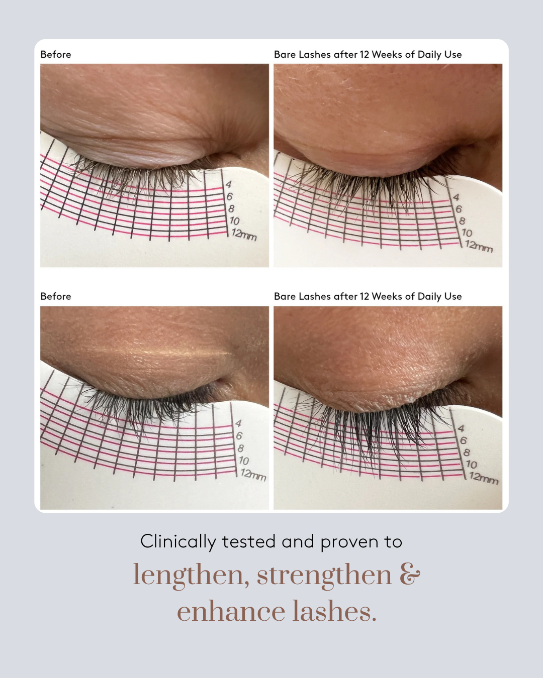 - Clínicamente probada para alargar, fortalecer y engrosar las pestañas